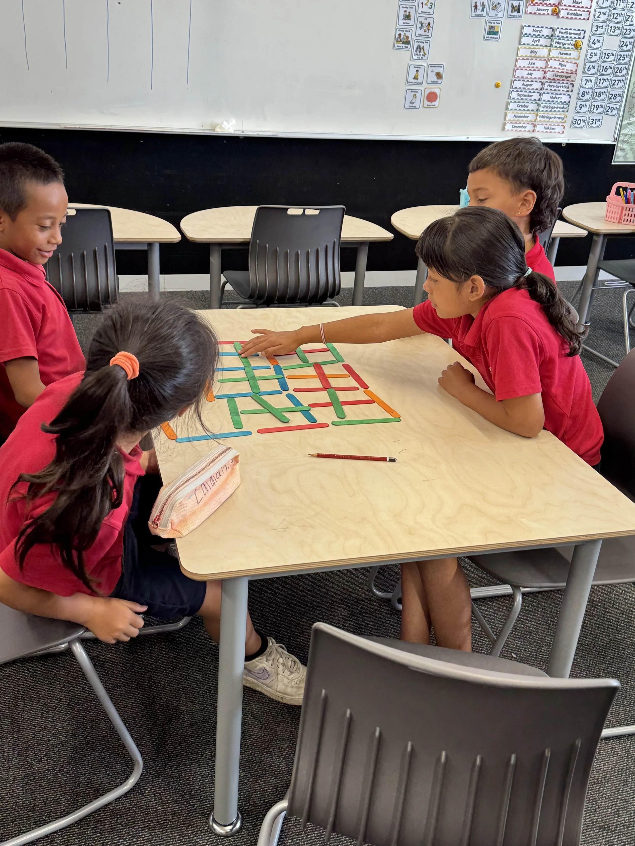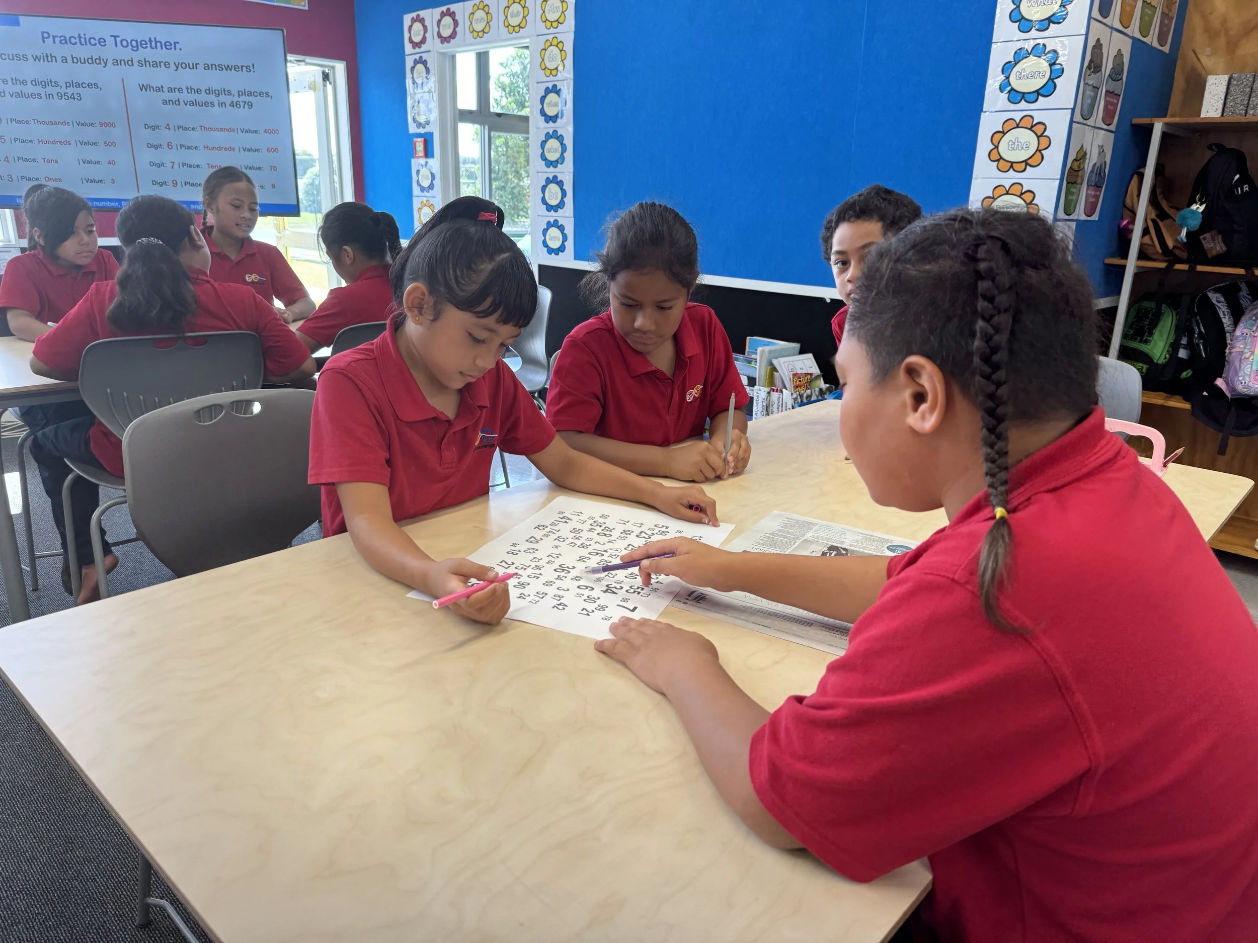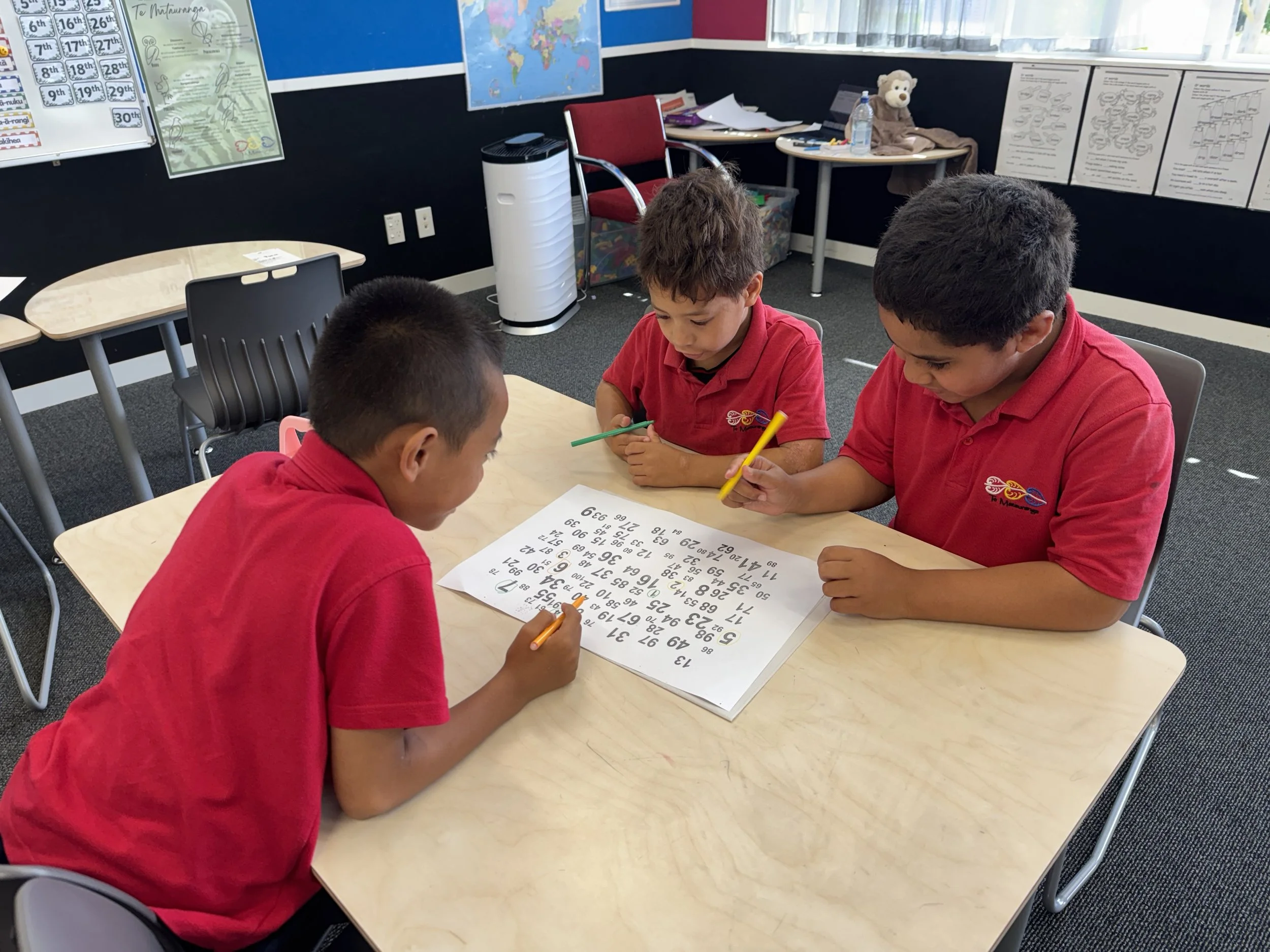 100 numbers: Each student has a different colour pencil/felt -Their Task is to circle numbers from 1-100. They circle their numbers in order of play. They can all help each other find numbers but each student must circle their own number when it is their turn.